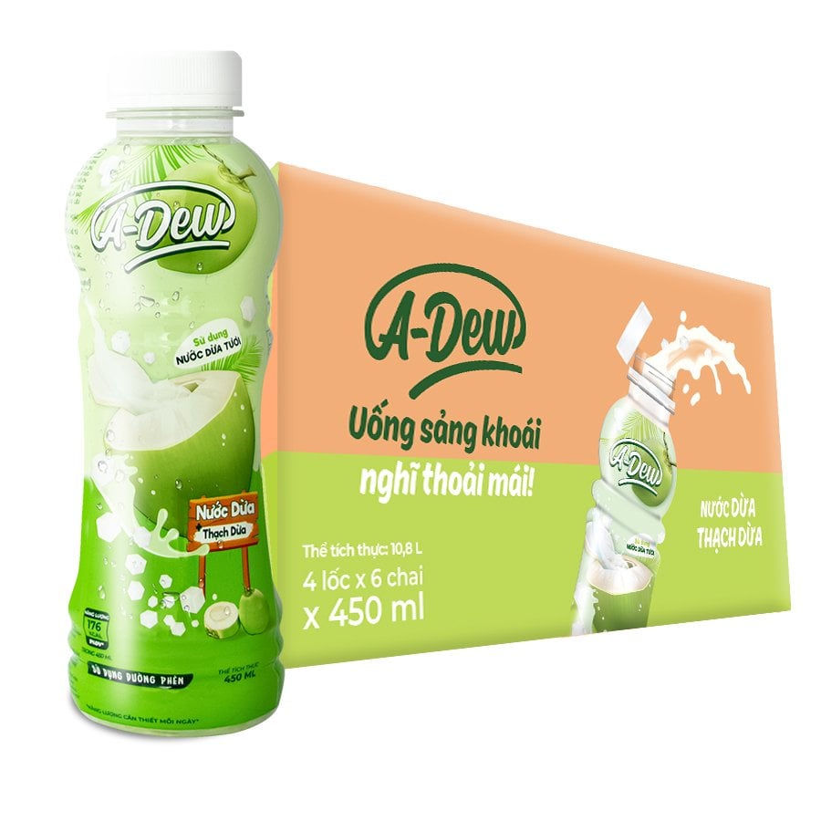 Featuring key ingredients of fresh coconut water and deliciously chewy coconut jelly, the A-Dew Coconut Water with Coconut Jelly 450ml has a natural refreshing taste from coconut and a mild sweetness from rock sugar, helping to relieve stress and effectively cool down during hot, sweltering days. Possessing a standardized, safe, and hygienic production system, A-Dew Coconut Water with Coconut Jelly fruit drink brings high-quality product experiences to customers. Enjoy A-Dew now to have the most authentic experience!