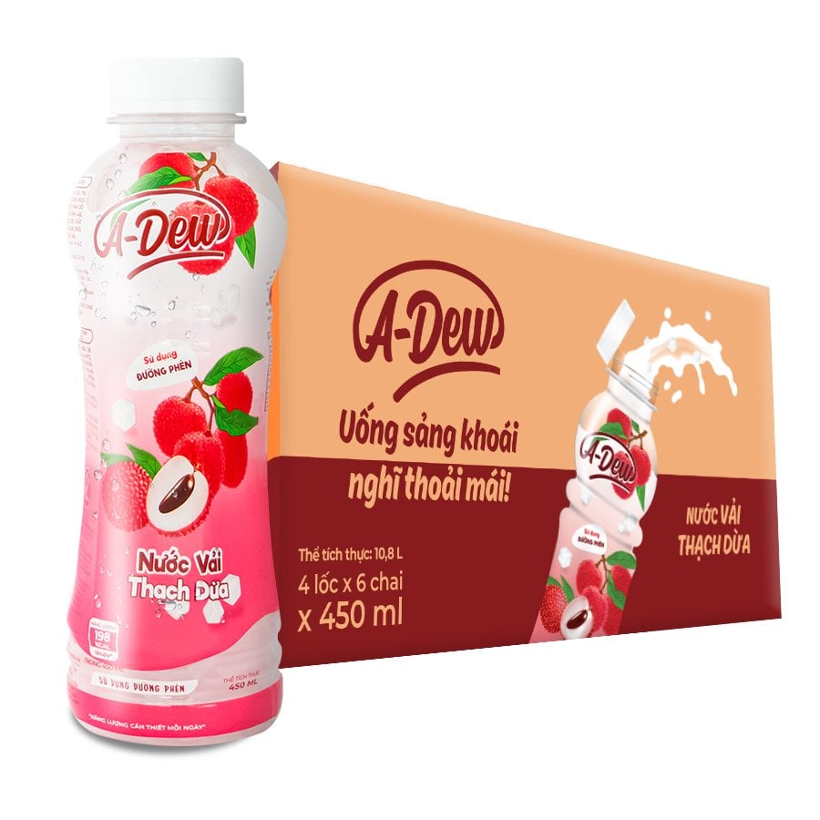 The harmonious combination of the subtle sweetness of plump lychees and soft, chewy coconut jelly in the A-Dew Lychee Drink with Coconut Jelly 450ml will bring a delightful surprise to the consumer. Using pure lychee juice, along with a standardized, safe, and hygienic production system, A-Dew Lychee and Coconut Jelly fruit drink is the perfect choice for studying and working during hot summer days. Enjoy A-Dew now to have the most authentic experience!