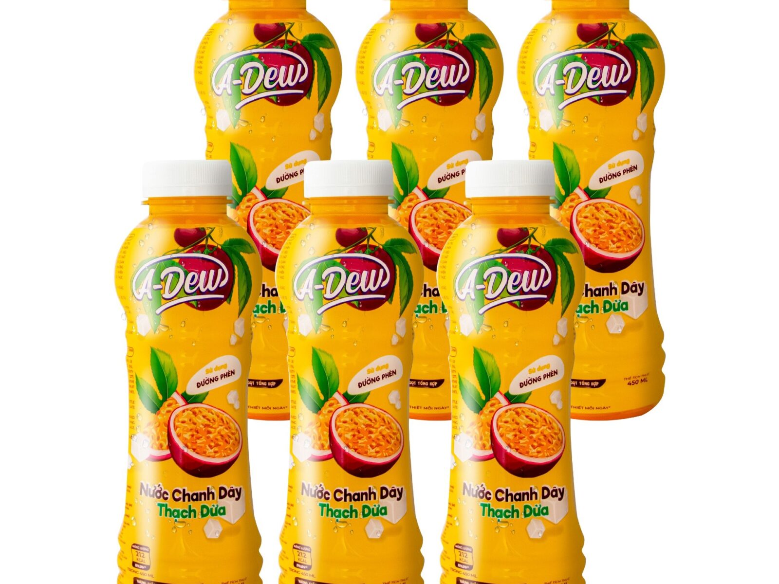 Characterized by the appealing sour taste of passion fruit, now combined with rock sugar and chewy coconut jelly, the A-Dew Passion Fruit Drink with Coconut Jelly 450ml delivers a harmonious flavor that satisfies your palate and effectively quenches your thirst. Possessing a standardized, safe, and hygienic production system, A-Dew Passion Fruit and Coconut Jelly fruit drink brings high-quality product experiences to customers. Enjoy A-Dew now to have the most authentic experience!